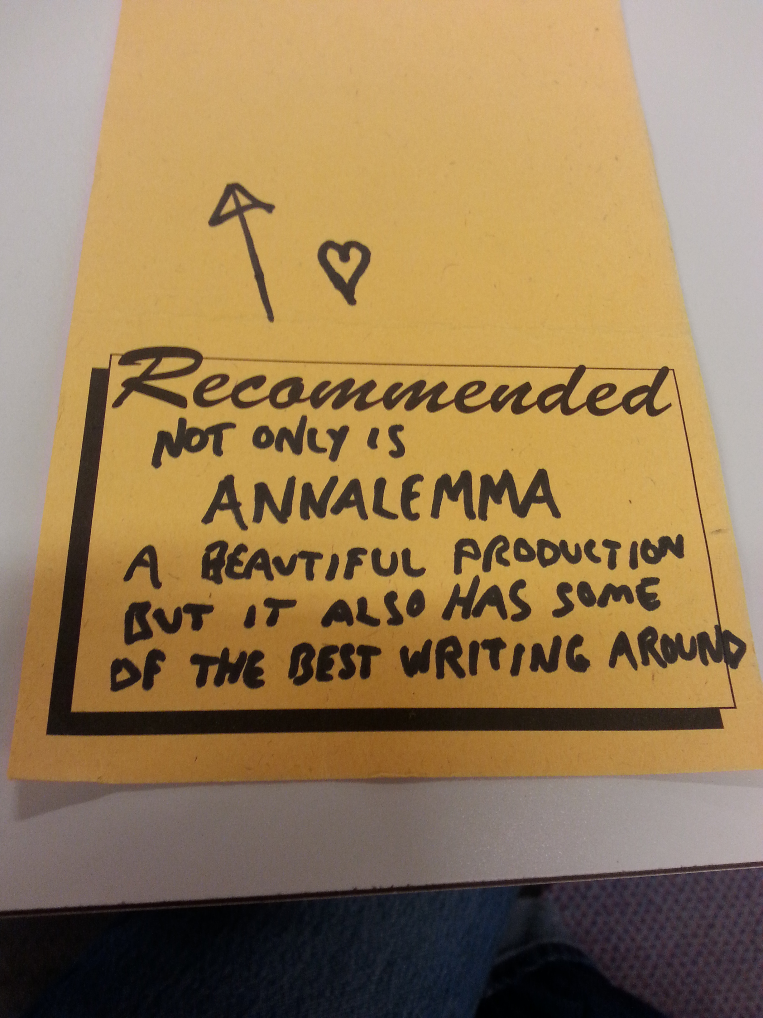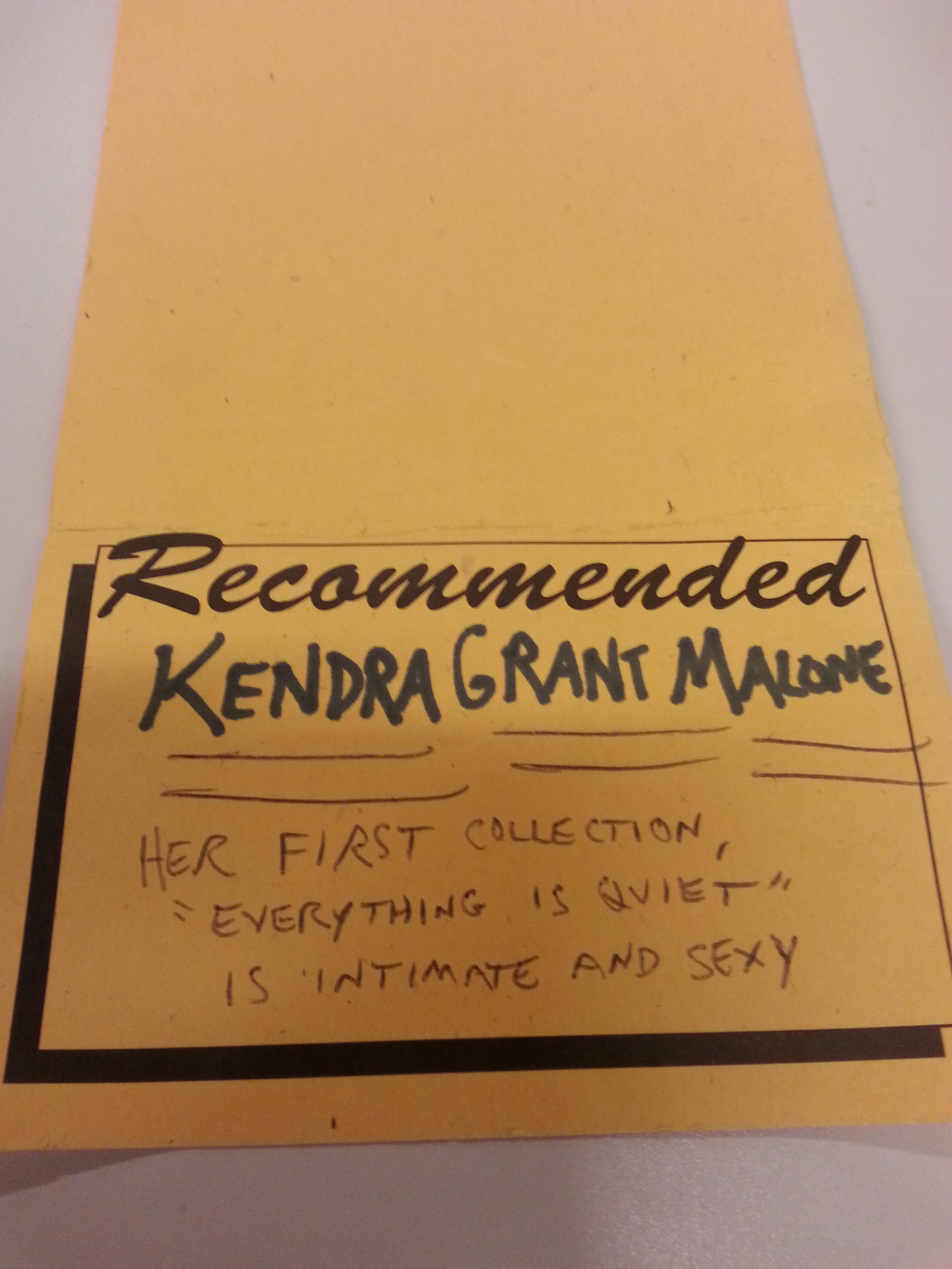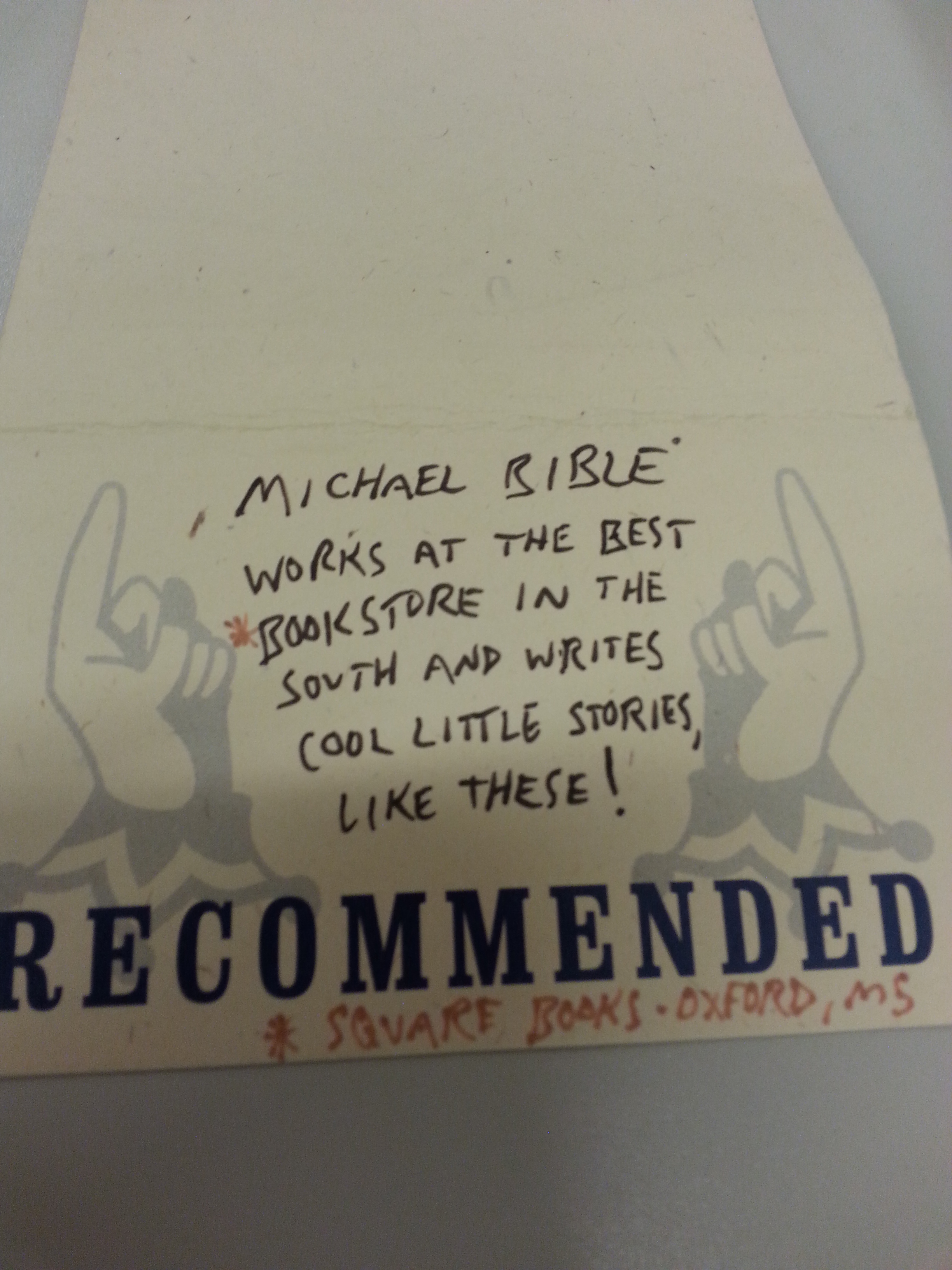 Last year, at work, we introduced a whole line of new shelf talker designs to freshen up the look of the store. That’s cool and everything, but (like a bibliophile hoarder) I am a little sad about throwing away some of my old stand-bys. I love making shelf talkers for my small press section. I think it has really helped a lot of readers discover new talent through the past fourteen years I’ve been in charge of it.
