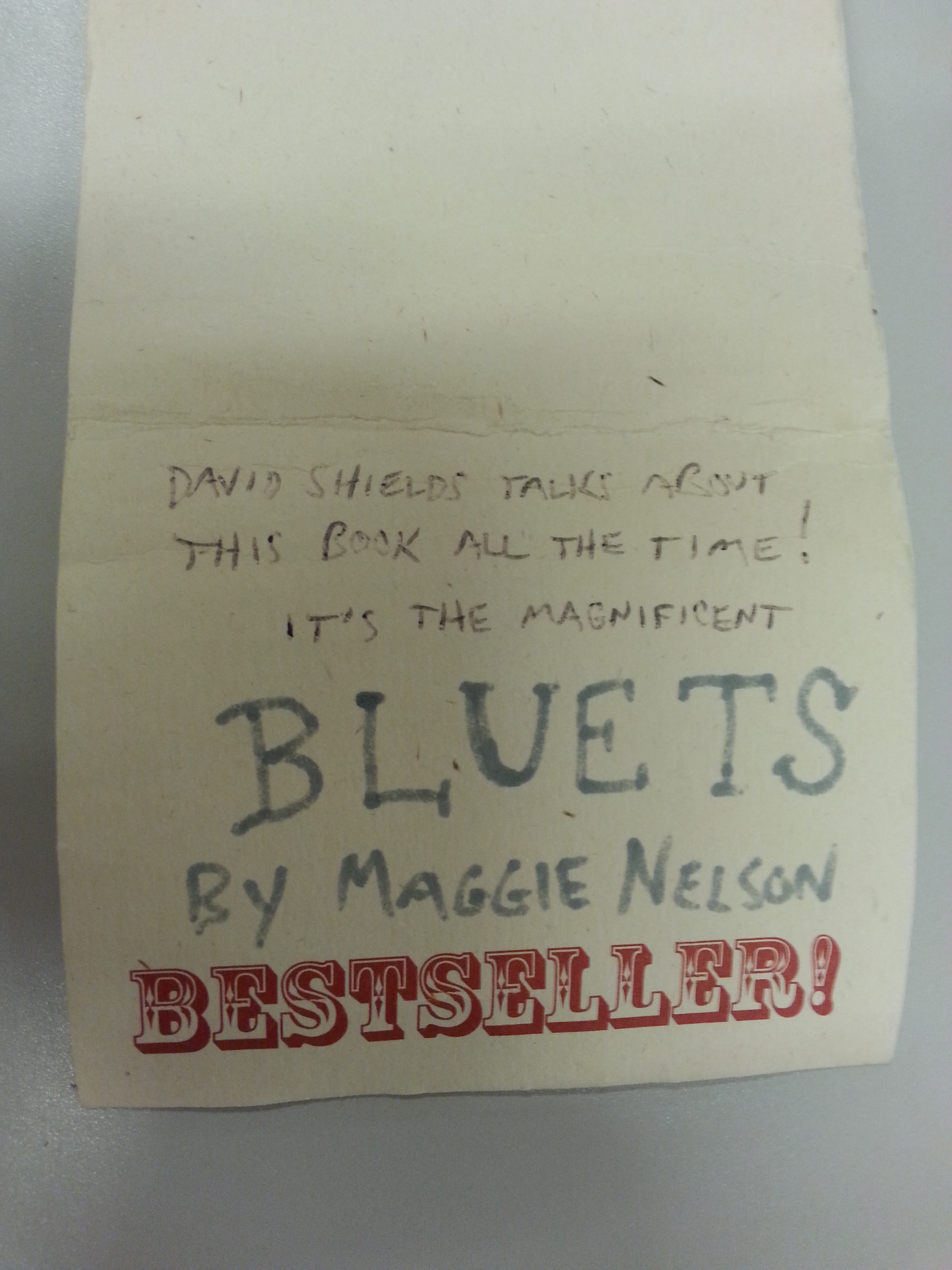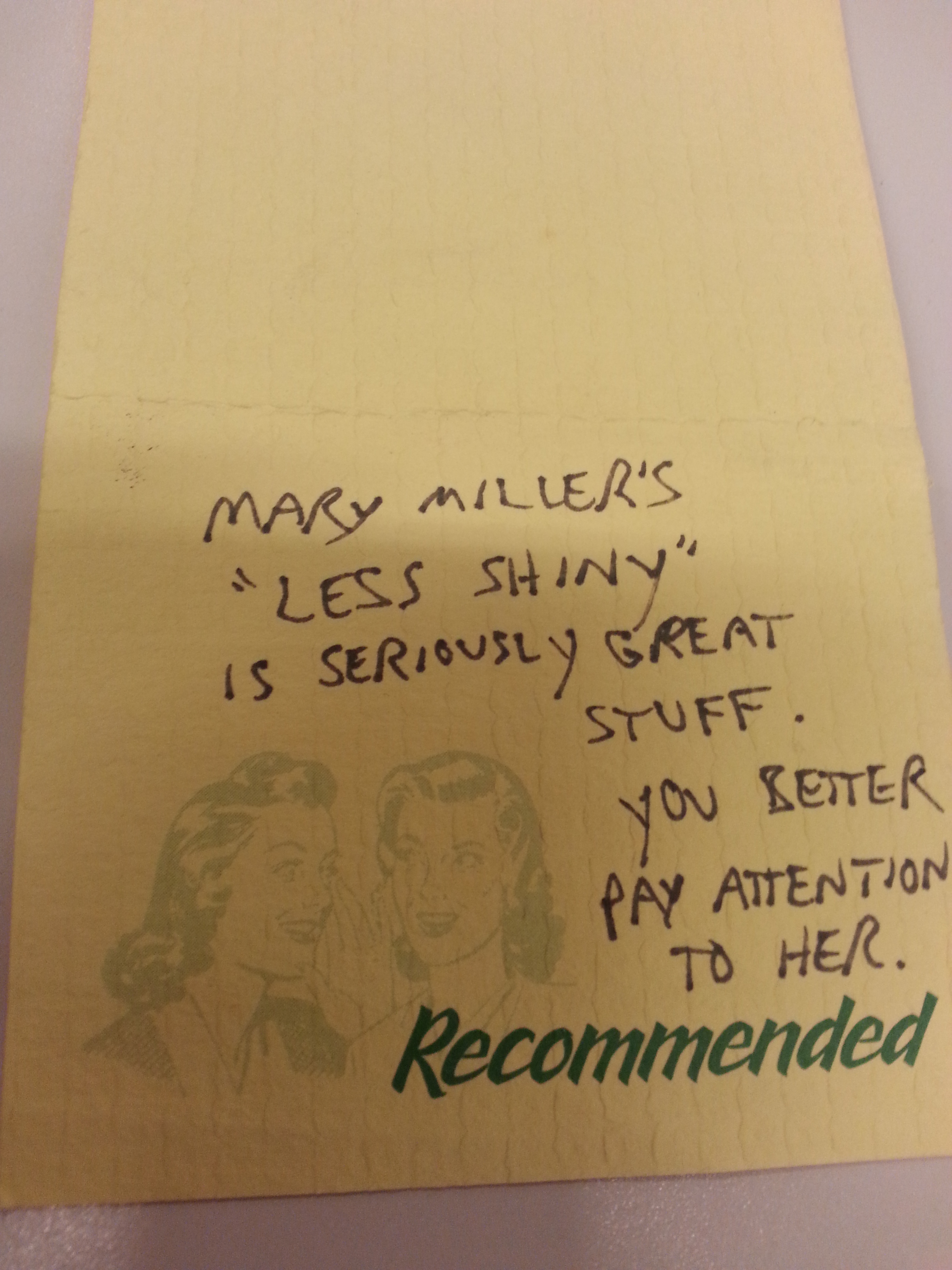 It’s one of those pieces of cardstock paper you see on a bookstore’s shelf that tells you when an employee really loves a book and wants to draw attention to it. I think the best bookstores are the ones full of passionate readers always willing to share their literary discoveries while also cultivating a sense of community. You can learn a lot about a bookstore’s collective personality by scanning what they choose to give shelf talkers to. I have been to a couple of bookstores where there are NO shelf talkers at all and it always jars me a little, like the store is saying: “You’re on your own here. We are not excited about anything and we have no opinions.”