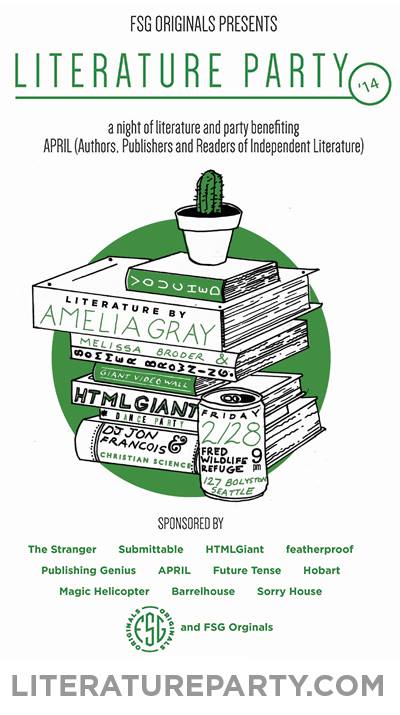 *Friday, 10pm: Ink Node reading at Left Bank Books at Pike Place Market. With Mathias Svalina, Dena Rash Guzman, and others. (also, Friday night is The Literature Party–dancing!–co-sponsored by Future Tense Books)