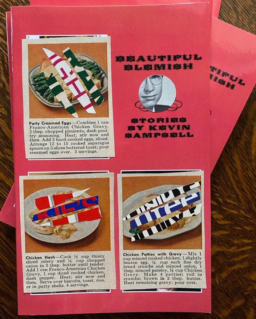 I actually still love this 100-page oddity, so I decided I’d refresh the book a little and collage every cover and then sell them to you directly. I think this could be a win-win situation for everyone. You get a rare artifact of early “Sampselliana” with an original collage, and I get to climb out of this unexpected financial ditch. I’m offering these on a sliding scale. How about $20-$50? You can pay more (way more?) if you like. My Venmo is @ kevin-Sampsell or my paypal is kevin @ futuretensebooks dot com. Include your mailing address when you do.